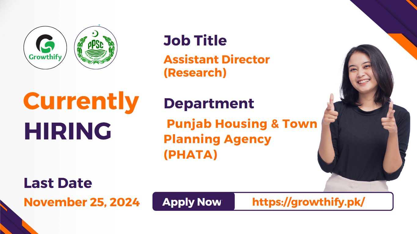 The Punjab Housing & Town Planning Agency (PHATA) is offering an exciting job opportunity for the position of Assistant Director (Research). This role is perfect for motivated individuals looking to contribute to urban development and public health engineering in Punjab.