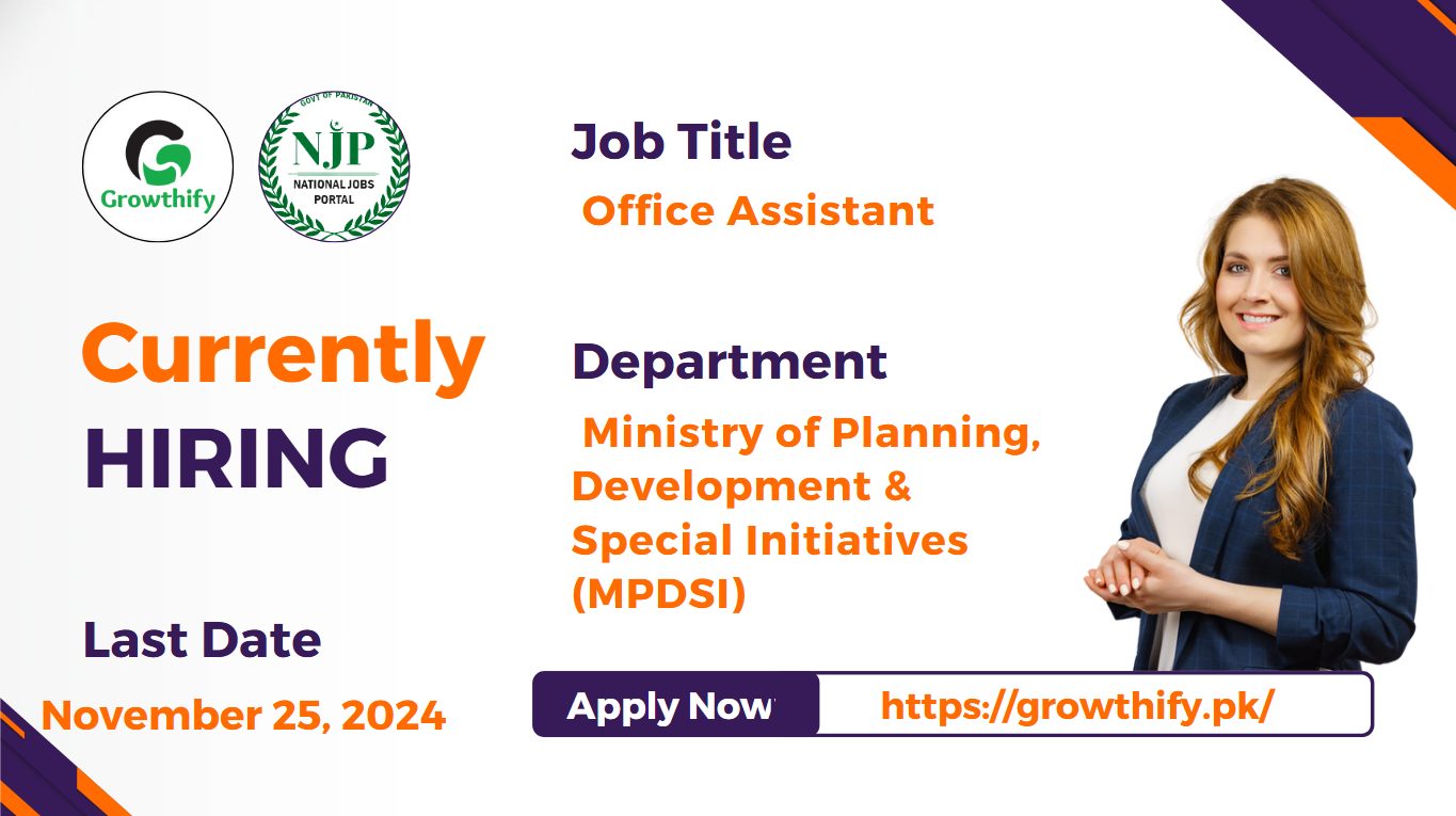 The Ministry of Planning, Development & Special Initiatives (MPDSI) in Pakistan is offering an exciting job opportunity for an Office Assistant in Islamabad.